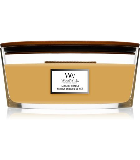 Woodwick Seaside Mimosa geurkaars met een houten lont (hearthwick) 453.6 g