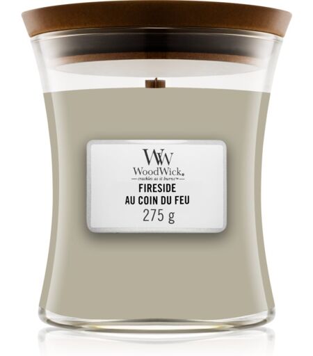 Woodwick Fireside Au Coin Du Feu geurkaars met een houten lont 275 g