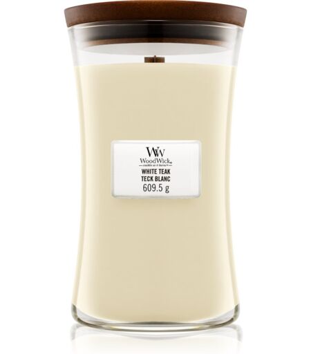 Woodwick White Teak geurkaars met een houten lont 609.5 gr