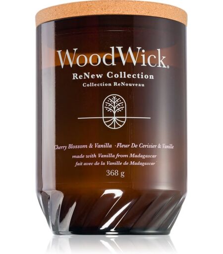 Woodwick Renew Cherry Blossom & Vanilla geurkaars met een houten lont 368 g