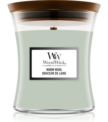 Woodwick Warm Wool geurkaars met een houten lont 275 g