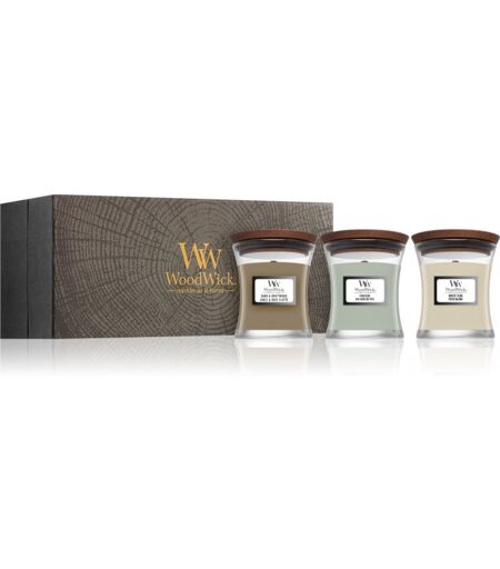 Woodwick Fireside + White Teak + Sand & Driftwood Gift Set 3x85 g