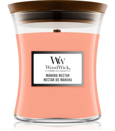 Woodwick Manuka Nectar, 275 gr, Geurkaarsen Huisgeuren, Geurkaars Woodwick Manuka Nectar geeft je huis een heerlijke geur om een gezellige sfeer te creëren waardoor je zich altijd goed voelt. Kenmerken: fruitige geur zoet aroma de lont knettert aangenaam tijdens het branden en creëert zo een gezellige sfeer Ingrediënten: houten lont Hoe te gebruiken: Plaats de kaars op een voldoende hittebestendig oppervlak. Laat hem niet langer dan 4 uur branden. Laat hem nooit helemaal opbranden. Laat de brandende kaars nooit onbeheerd achter in de buurt van licht ontvlambare voorwerpen. Buiten het bereik van kinderen en huisdieren houden. Laat de kaars altijd branden totdat minstens de volledige bovenste laag gesmolten is. Zo voorkom je dat er een kuiltje in de was ontstaat. Voor een optimaal brandproces raden we aan om de lont geregeld af te knippen tot de aanbevolen lengte. ...