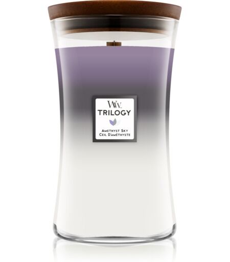 Woodwick Trilogy Amethyst Sky geurkaars met een houten lont 609.5 g