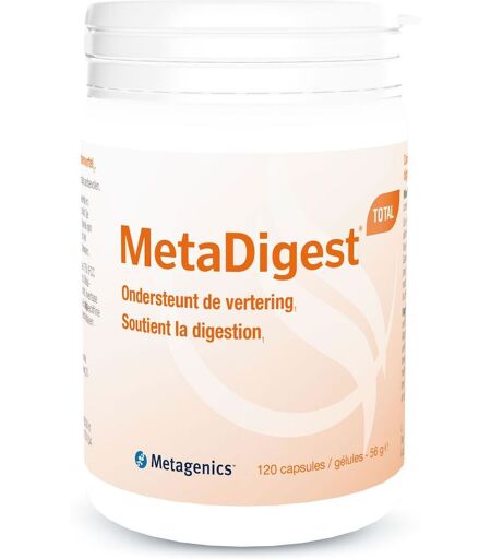 Metagenics MetaDigest Total Capsules is een voedingssupplement geschikt bij een moeilijke vertering, enzymentekort, bij inname van maagzuurremmers en bij misselijkheid na de maaltijd. Het bevat gemberwortelextract dat ondersteuning biedt bij de vertering en bij een misselijk gevoel na de maaltijd. ...