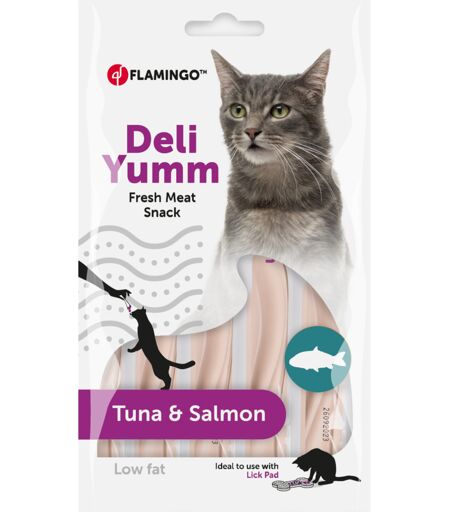 5x14g met tonijn & zalm Flamingo Deli Yumm Paste kattensnack