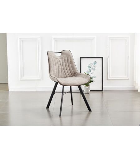 Moderne industriële eetkamerstoel met metalen onderstel en handgreep. Afmetingen Breedte 54 cm Diepte 63 cm Hoogte 87 cm Kleur lichtgrijs ...