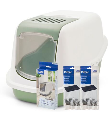 Savic Kattenbak Nestor - Startset: Toilet botanisch groen/wit + 2 filters + 12 zakken