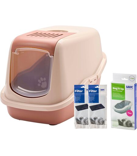 Savic Kattenbak Nestor - Startset: toilet champagne roze/ toscane rood + 2 filters + 12 zakken