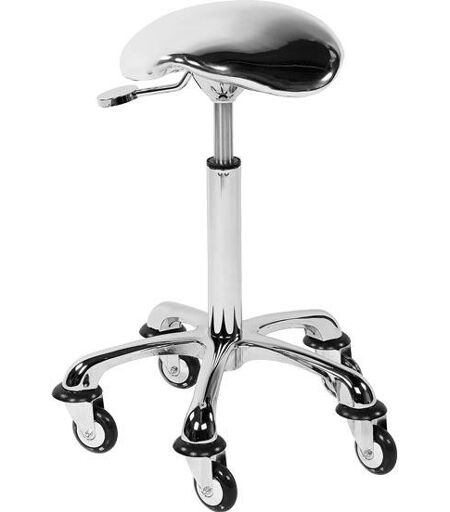 Metallic lederen zadel en schuim met hoge dichtheid voor maximaal comfort. Luxe uitstraling met chromen voet. Met RollerCoaster haarvaste wielen en chromen kapjes. In hoogte verstelbaar van 45 tot 65 cm en een Ø van 48 cm. Zadel: 29 x 29 x 7 cm. ...