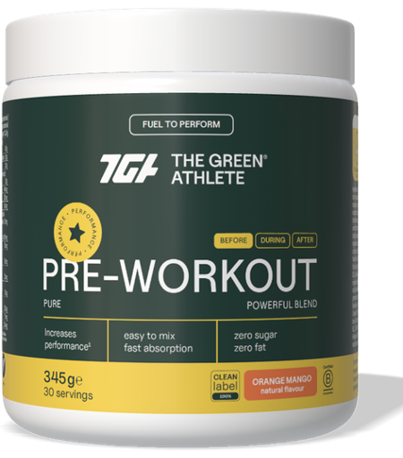 The Green Athlete Pre-Workout Poeder (345) is een zorgvuldig samengesteld voedingssupplement voor gebruik vóór fysieke inspanning. Deze formule combineert aminozuren, elektrolyten, geselecteerde plantenextracten en natuurlijke cafeïne. Het product bevat onder andere mangobladextract (Zynamite®) en ...