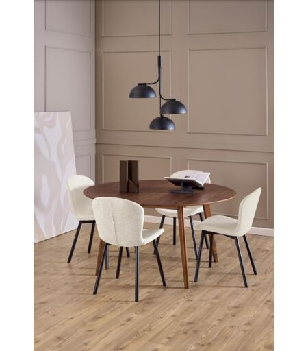 Laat de kamer ruimer aanvoelen!Omdat deze eettafel een ronde vorm heeft, is hij een geweldige optie voor bescheiden stedelijke ruimtes. Het is ook gemakkelijk om een gezellige sfeer te creëren omdat iedereen dicht bij elkaar zit. Dankzij de warme walnoot kleur past deze tafel goed bij zowel donkere als lichte kleuren.Deze ronde eettafel walnoot is verkrijgbaar in de afmeting (lengte x breedte x hoogte):Ø 140 x 76 cmKleur: walnoot bruinMaterialen:Tafelblad met échte houtfineer... ...