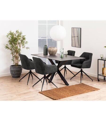 Luxe strak vormgegeven eetkamertafel met tafelblad van glas keramiek. Gecombineerd met metalen matrix onderstel.Deze tafel is te combineren met de bijpassende salontafel.Deze tafel is verkrijgbaar in de afmeting lxbxh:160 x 90 x 75,5 cmKleurcombinatie:Tafelblad antraciet grijsOnderstel: zwartMaterialen:Tafelblad: veiligheidsglas met keramiek toplaagOnderstel: metaal poedercoating ...