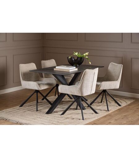 Deze keramische eettafel biedt een uitgebalanceerde esthetiek en royale ruimte voor 4 personen. Ontworpen met een hitte- en krasbestendig keramisch tafelblad in een donker antracietzwarte look gecombineerd met een zwart kruispoot onderstel, heeft deze tafel een moderne uitstraling en is hij ook gemakkelijk te onderhouden.Deze tafel is verkrijgbaar in de afmeting L x B x H:135 x 80 x 75,5 cmKleurcombinatie:Tafelblad antracietOnderstel zwartMaterialen:Tafelblad van veiligheidsglas met... ...
