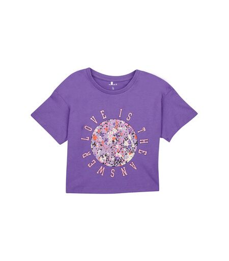 T-shirt Name it  NKFBOLETTE SS LOOSE SHORT TOP  Violet Verkrijgbaar in meisjesmaat. 8 Jahre,7 Jahre Kleding > Shirts > t-shirts > Kinder t-shirts ...