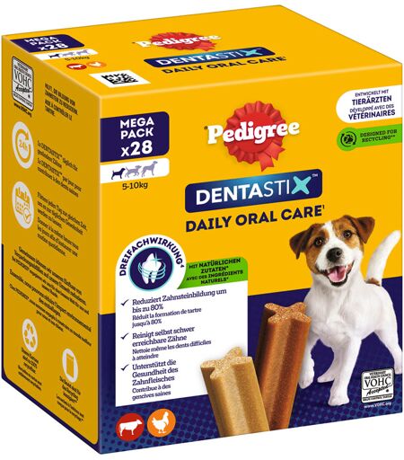 Pedigree Dentastix is een kauwsnack die het gebit verzorgt. Door de unieke samenstelling de reinigende, actieve stoffen in de Pedigree Dentastix worden tandaanslag tandsteen significant verminderd ...