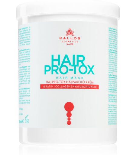 Kallos Hair Pro-Tox Masker voor Slap en Beschadigd Haar met Kokosolie, Hyaluronzuur en Collageen 1000 ml