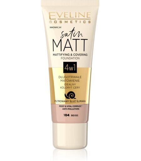 Eveline Cosmetics Satin Matt Matterende Make-up met Slakken Extract Tint 104 Beige 30 ml