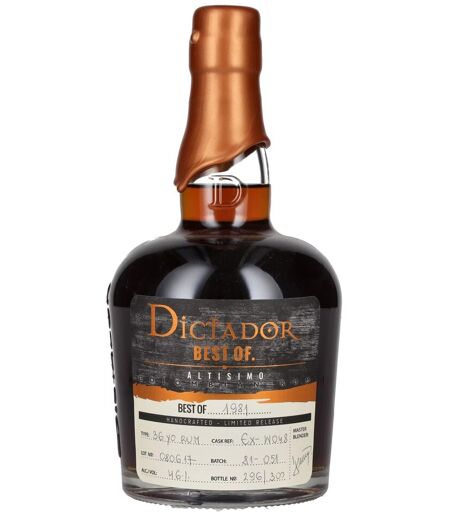 Dictador rum Dictador BEST OF 1981 ALTISIMO Colombian Rum 36YO/080617/EX-W048 46% Vol. 0,7l