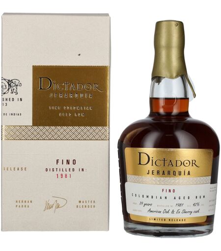 Dictador rum Dictador JERARQUÍA 39 Years Old FINO Rum 1981 42% Vol. 0,7l in geschenkverpakking