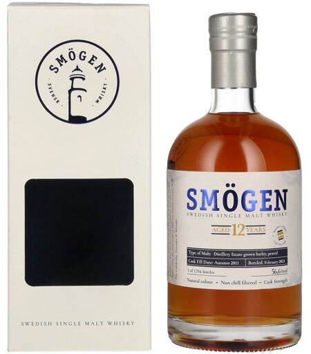 SMÖGEN 12 Years Old Distillery Estate Barley Swedish Single Malt Whisky 56,6% Vol. 0,5l in geschenkverpakking