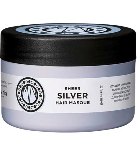 De bosbessenextracten in het Maria Nila Sheer Silver Masker neutraliseren de gele tint in blond haar. Het masker geeft het haar een gezonde, glanzende uitstraling. Het kleurbeschermingscomplex beschermt ook tegen UV-stralen en zorgt voor het behoud van de haarkleur. Maria Nila Sheer Silver Conditioner is niet alleen 100% veganistisch, maar ook vrij van parabenen en sulfaten. Toepassing: Aanbrengen op fris gewassen, vochtig haar, 3 minuten laten inwerken en uitspoelen. Voor een intenser effect laat u het masker 5 tot 10 minuten inwerken, spoelt u het af en maakt u het af met de Sheer Silver Conditioner. Maria Nila Care zijn vijf kleurbeschermende verzorgingslijnen. Elke serie bevat shampoo, conditioner en een masker. Verschillende haarsoorten en haarstructuren vereisen verzorgingsproducten die speciaal op hen zijn afgestemd. Daarom is elke Maria Nila Care serie gewijd aan een specifiek haartype. Zorgvuldig geselecteerde ingrediënten, die optimaal zijn afgestemd op de respectieve haarbehoeften, zorgen ervoor dat aan de eisen van elk haartype wordt voldaan. Alle producten zijn vrij van parabenen en sulfaten. Sheer Silver is speciaal ontwikkeld voor blond, grijs en zilver haar. De violette pigmenten neutraliseren de gele tint in het haar en geven grijs en/of wit haar een nieuwe glans. ...