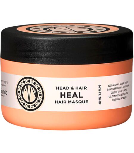 Een ontstekingsremmend en haargroeistimulerend haarmasker. Piroctone Olamine en natuurlijke extracten van aloë vera behandelen en verminderen roos en andere hoofdhuidproblemen. Vitamine E, apigenine en peptiden stimuleren de haarfollikels voor een verhoogde haargroei. Oleanolzuur voorkomt ook haaruitval. Toepassing: Aanbrengen op fris gewassen, vochtig haar, 3 minuten laten inwerken en uitspoelen. Voor een intenser effect laat u het masker 5 tot 10 minuten inwerken, spoelt u het af en maakt u het af met Head and Heal Conditioner. Voor de preventie en behandeling van roos en andere hoofdhuidproblemen. Vermindert haaruitval en bevordert de haargroei. De Maria Nila Head and Hair Heal verzorgingsserie intensiveert, beschermt en onderhoudt uw haarkleur. Tegelijkertijd vermindert het roos en andere hoofdhuidproblemen, vermindert het haaruitval en stimuleert het de haargroei. Elke reeks bevat shampoo, conditioner voor elke dag en een haarmasker, dat 1 tot 2 keer per week wordt gebruikt. Actieve bestanddelen tegen roos: Aloë Vera, Piroctone Olamine en Vitamine E. ...