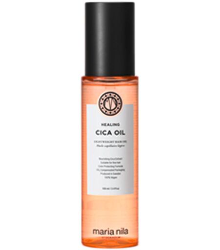 Maria Nila Healing Cica Oil voedt fijn haar intensief zonder het te verzwaren. De ultralichte textuur geeft stralende glans, soepelheid en kracht zonder afbreuk te doen aan het volume. Verrijkt met Cica (Centella Asiatica), kalmeert en regenereert het haar en zorgt voor een merkbare verzorging en een gezond, soepel haargevoel. De Healing Cica Oil biedt hittebescherming tot 230 °C en is daarom ideaal om te gebruiken voordat je hittetools gebruikt. Voor styling, als finish of als onderdeel van de dagelijkse verzorging, het vermindert pluis, houdt vocht vast en geeft het haar een vleugje luxe. Hittebescherming tot 230 °CVerzwaart het haar niet100% veganistisch Toepassing: Breng een kleine hoeveelheid Cica Oil aan op vochtig of droog haar, met de nadruk op de lengtes en punten. Aanbrengen voor het stylen voor hittebescherming tot 230 °C, na het stylen voor extra glans of als finish tegen pluizig haar. Niet uitspoelen. Geschikt voor dagelijks gebruik. ...