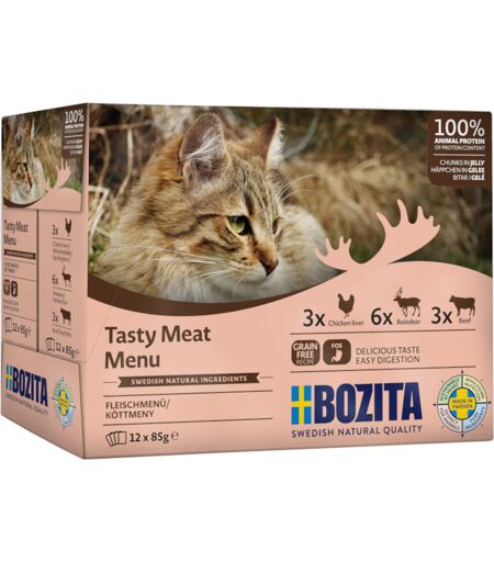 Evenwichtig natvoer voor volwassen katten. Heerlijke hapjes in gelei. Graanvrije receptuur zonder suiker soja. Prebiotica (FOS) voor een goede darmflora. 100% hoogwaardige, Zweedse ingrediënten. ...
