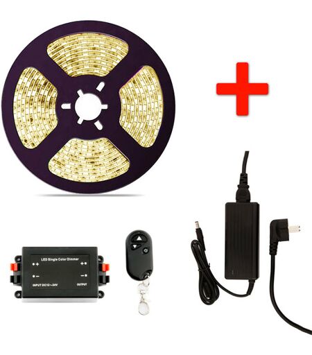 Groenovatie LED Strip Set, 5 Meter, 7.2 Watt/meter, Warm Wit, Waterdicht IP68, Met Adapter & Draadloze Dimmer