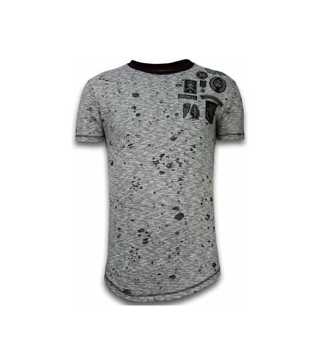 Local Fanatic T-shirt Longfit Asymric Embroidery Patches Grijs
