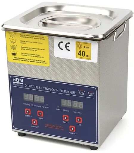 De HBM 2 Liter Ultrasoon Reinigerverwijderen moeiteloos hardnekkig vuil, ook op moeilijk bereikbare plekken zoals holtes, buisjes of inwendige kanalen. Dankzij ultrasone golven ontstaat cavitatie: microscopische dampbellen imploderen en zorgen voor een krachtige, mechanische wrijfactie. Dit maakt ultrasoon reinigen zeer grondig, zelfs op plekken waar je met de hand niet bij kunt. De combinatie van trillingen en vloeistof maakt het mogelijk om ook chemisch te reinigen – ideaal bij bijvoorbeeld roest of kalk. Veel modellen beschikken over een instelbare temperatuur en tijd, verwarming en een robuuste behuizing met handgrepen. De warmte en het reinigingsproces zijn vaak apart in te schakelen. Voor gebruik in een afgesloten, geventileerde ruimte wordt gehoorbescherming aanbevolen. ...