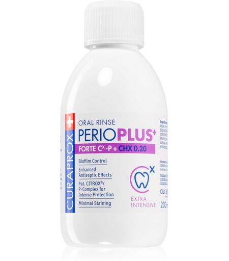 Curaprox Perio Plus+ Forte 0.20 CHX, 200 ml, Mondwater & Spray Unisex, Het mondwater Curaprox Perio Plus+ Forte 0.20 CHX verfrist niet alleen de adem maar vecht ook tegen tandplak en helpt het tandvlees en de tanden gezond te houden. Kenmerken: bestrijdt tandbederf behoudt gezond tandvlees vernietigt bacteriën zorgt voor frisse adem Hoe te gebruiken: Spoel na het reinigen van de tanden de mond met mondwater gedurende de tijd die aangegeven staat op de verpakking en spuug vervolgens uit. ...