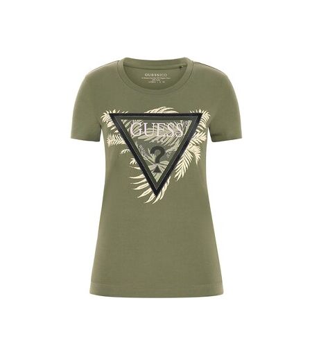 Guess T-shirt Cn Ss Triangle Palm Print Groen