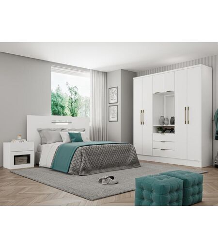 Laat uw slaapkamer niet overspoelen door de wanorde, kies voor de kast ELORIO en creëer een harmonieuze en verfijnde sfeer. Dankzij zijn ingebouwde spiegel kunt u zich in een oogwenk klaarmaken en zijn verschillende vakken bieden optimale opbergruimte voor uw kleding, schoenen en accessoires. Details Kleur (tint): Wit Materiaal: Spaanplaat 6 deuren Draaideur Deuropening mechanisme: Handgreep Soort kast: 3 laden, 2 nissen, 5 linnenkasten, 2 kledingstangen Schuiflade 1 spiegel Meubel om zelf in elkaar te zetten : Maximale belasting van één hanggedeelte: 8 kg Maximale belasting van een nis: 8 kg Maximale belasting van een lade: 8 kg Afmetingen Lengte: 180 cm Hoogte: 206 cm Diepte: 46.5 cm Grote deur (x4): L29,4 x H118,5 cm Kleine deur (x2): L29,4 x H41,8 cm Hangkast (x2): L58 cm Spiegel: L53 x H76 cm Levering De levertijd van dit product zal worden bevestigd in de winkelwagen. Wij raden u aan om bij de levering goed het aantal geleverde pakketten te controleren. Pakket Pakket nummer 1: Lengte 202 cm, Breedte 65 cm, Hoogte 9 cm, Gewicht 43 kg, Pakket nummer 2: Lengte 219 cm, Breedte 50 cm, Hoogte 12 cm, Gewicht 53 kg, Pakket nummer 3: Lengte 80 cm, Breedte 57 cm, Hoogte 4 cm, Gewicht 10 kg, ...